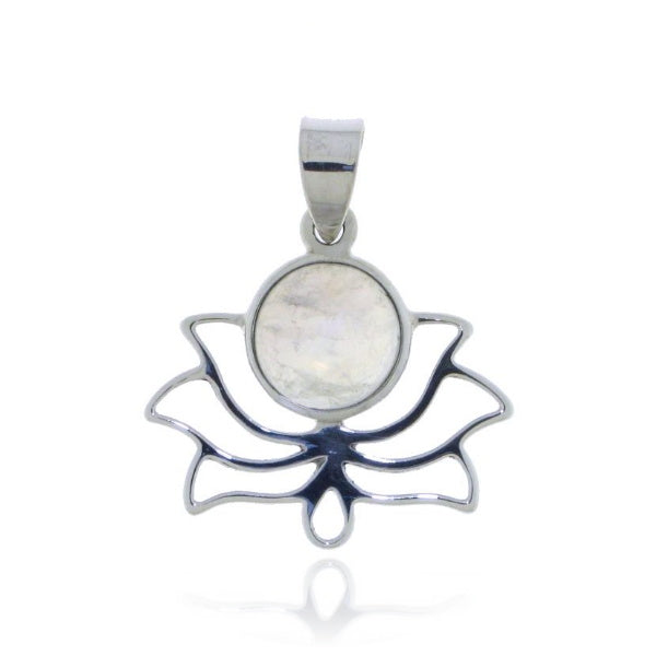 Zilveren Lotus hanger met Regenboog Maansteen edelsteen