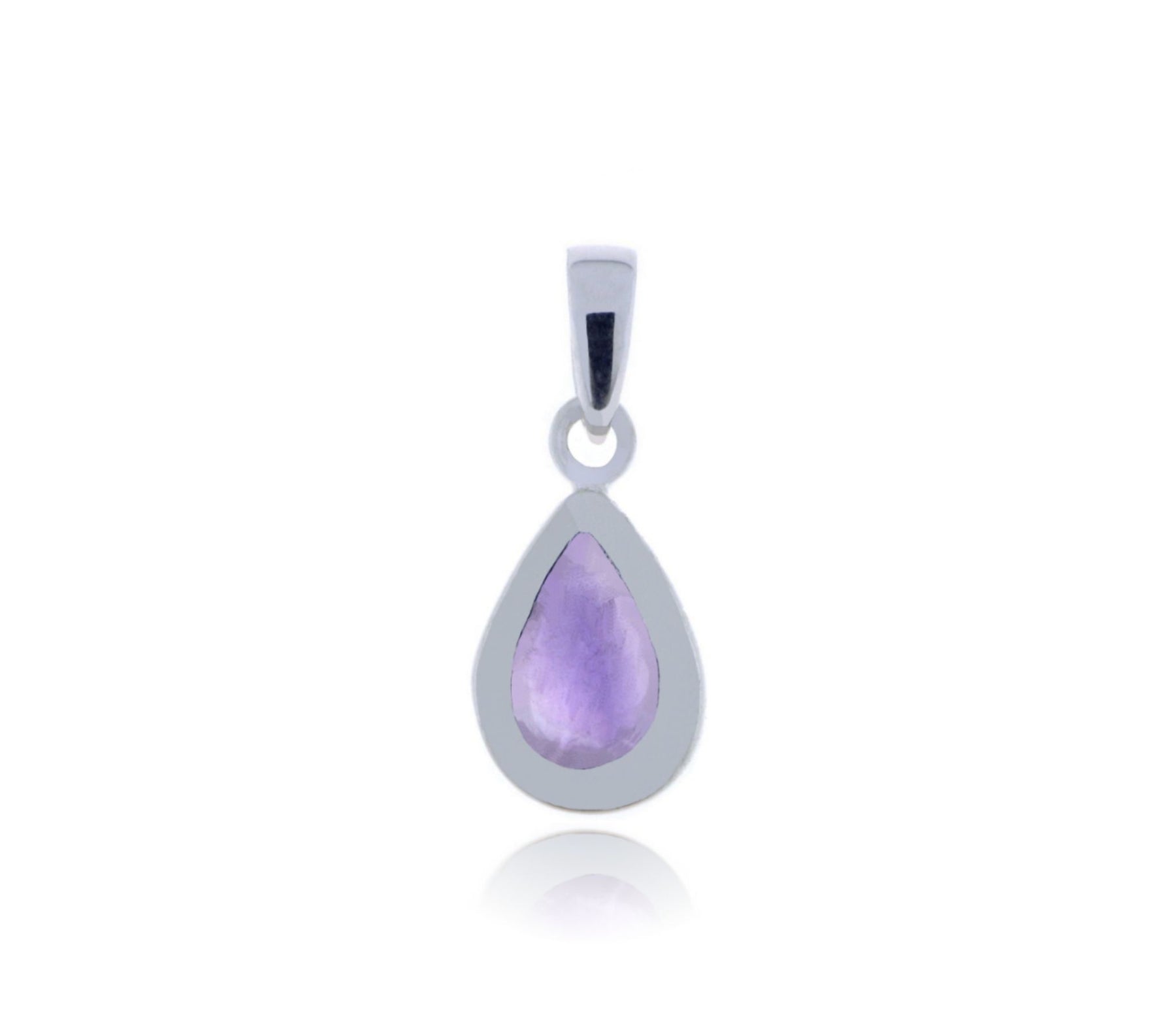 Druppelvormige hanger gemaakt van 925 sterling zilver met een 10 x 7 mm cabouchon geslepen Amethist edelsteen. De afmeting van de hanger is 22 x 9 mm.