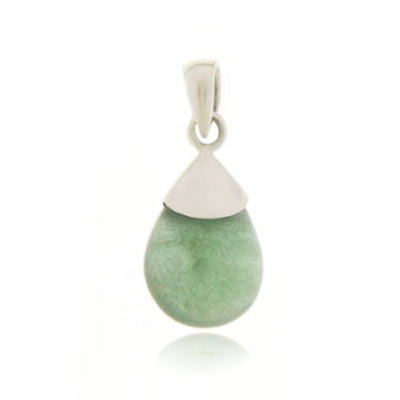 Hanger gemaakt van 925 sterling zilver met een Aventurijn edelsteen. De afmeting van de hanger is 22 x 12 mm. De Aventurijn edelsteen is druppelvormig en cabouchon geslepen met een afmeting van 16 x12 mm.