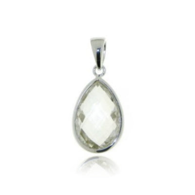 Hanger gemaakt van 925 sterling zilver met een Bergkristal edelsteen. De afmeting van de hanger is 26 x 12 mm. De Bergkristal edelsteen is druppelvormig en facet geslepen met een afmeting van 16 x 10 mm.