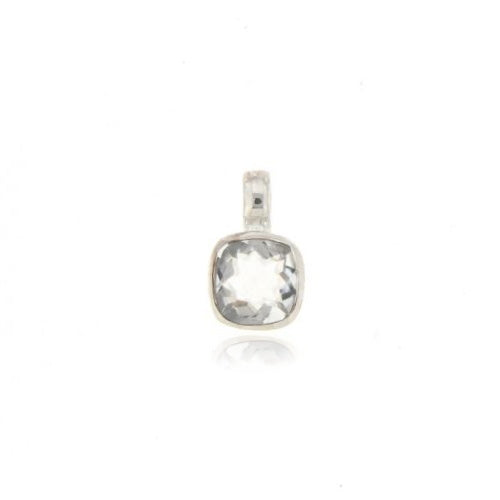Vierkante hanger gemaakt van 925 sterling zilver met een 7 mm facet geslepen Bergkristal  edelsteen. De hanger heeft een afmeting van 13 x 8 mm.