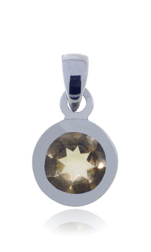 Ronde hanger gemaakt van 925 sterling zilver met een 9 mm facet geslepen Citrien edelsteen. De hanger heeft een afmeting van 20 x 11 mm.