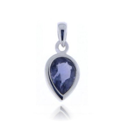 Druppelvormige hanger gemaakt van 925 sterling zilver met een 12 x 8 mm facet geslepen Ioliet edelsteen. De hanger heeft een afmeting van 22 x 10 mm.