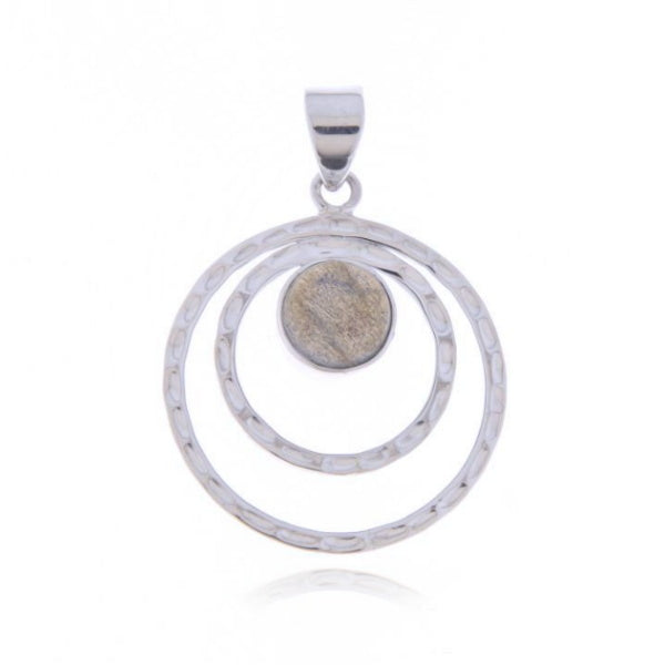 Hanger gemaakt van 925 sterling zilver met een Labradoriet edelsteen. De afmeting van de hanger is 35 x 25 mm. De Labradoriet edelsteen is rond en cabouchon geslepen met een afmeting van 8 mm.