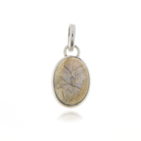 Ovale hanger gemaakt van 925 sterling zilver met een 14 x 10 mm cabouchon geslepen Labradoriet edelsteen. De afmeting van de hanger is 25 x 15 mm.