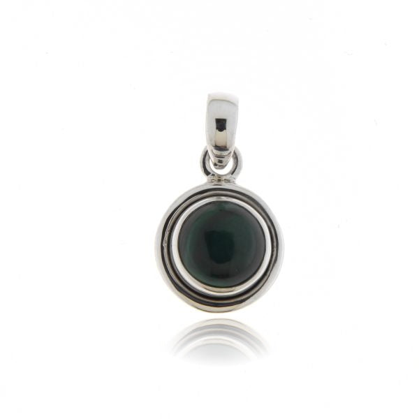 Zilveren hanger gemaakt van 925 sterling zilver met een cabouchon geslepen Malachiet edelsteen. De hanger heeft een afmeting van 23 x 13 mm.