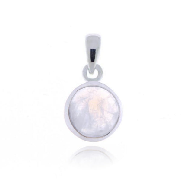 Zilveren hanger gemaakt van 925 sterling zilver met een cabouchon geslepen Regenboog Maansteen edelsteen. De hanger heeft een afmeting van 20 x 10 mm.