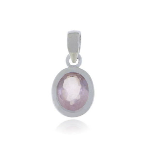 Ovale hanger gemaakt van 925 sterling zilver met een 9 x 7 mm facet geslepen Rozenkwarts edelsteen. De hanger heeft een afmeting van 21 x 10 mm.