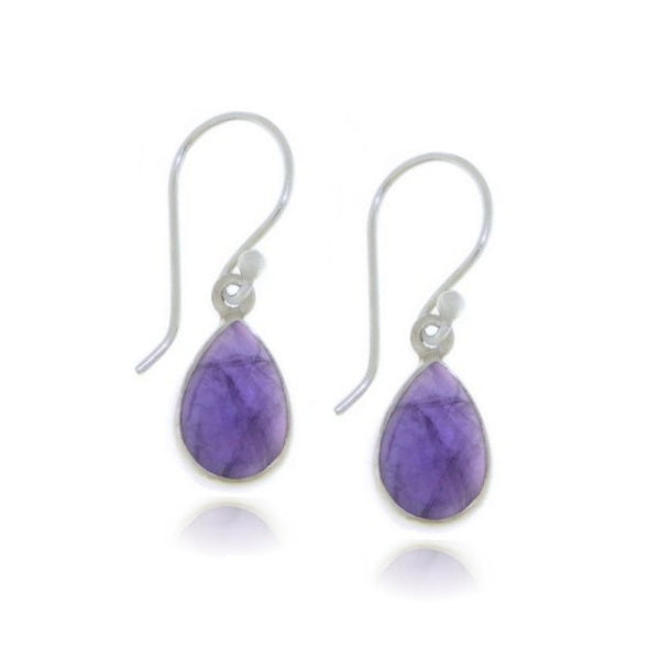 Druppel vormige oorhangers gemaakt van 925 sterling zilver met Amethist edelstenen. De oorhangers hebben een afmeting van 28 x 9 mm.