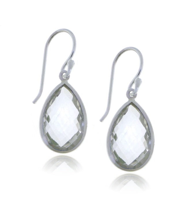Oorhangers gemaakt van 925 sterling zilver met facet geslepen Bergkristal edelstenen. De oorhangers hebben een afmeting van 30 x 11 mm.