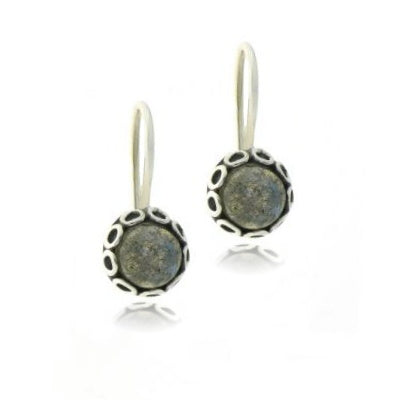 Oorhangers gemaakt van 925 sterling zilver met cabouchon geslepen Labradoriet edelstenen. De oorhangers hebben een afmeting van 15 x 9 mm.