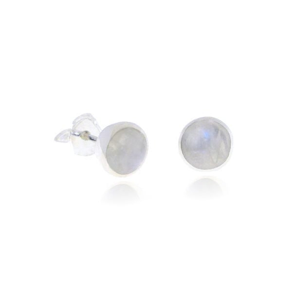 Oorknopjes gemaakt van 925 sterling zilver met ronde 6 mm Regenboog Maansteen edelstenen.