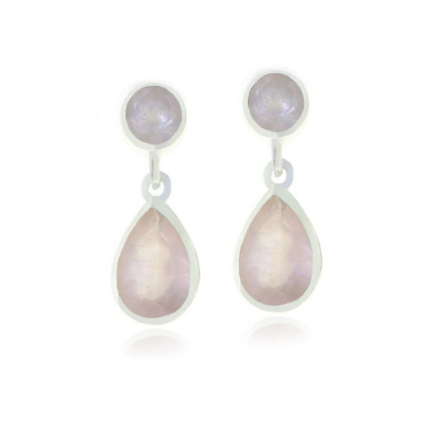 Oorstekers met 5 mm ronde edelsteen met een hangende druppel edelsteen van 9 x 7 mm gemaakt van 925 sterling zilver met Rozenkwarts edelstenen. De edelstenen zijn facet geslepen, waardoor ze een prachtige uitstraling hebben.