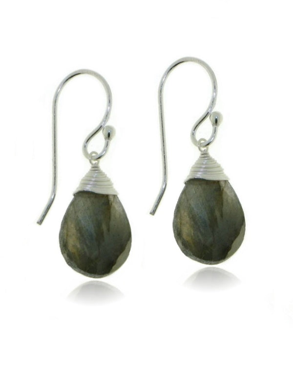 Oorhangers gemaakt van 925 sterling zilver met 14 x 10 mm Labradoriet edelstenen. Een zilverdraad is speels in spiraalvorm aan de bovenzijde van de edelsteen gewikkeld en maakt hem zeer verfijnt. De oorhangers hebben een afmeting van 30 x 14 mm.