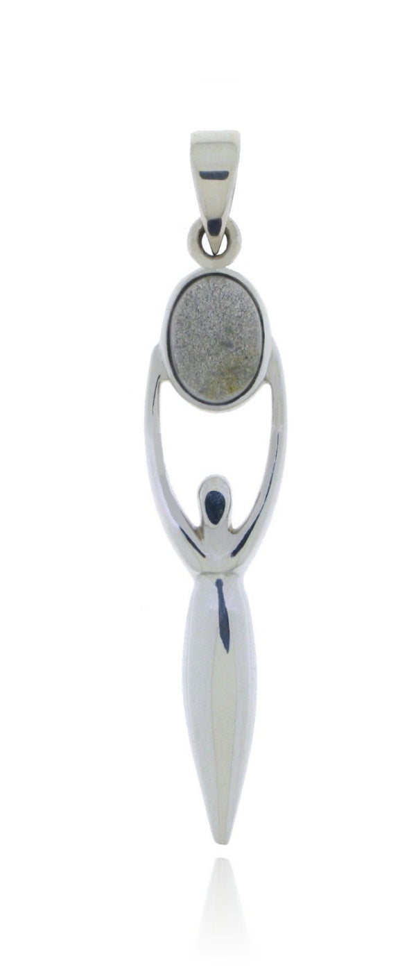 Godin van de Aarde, Gaia hanger gemaakt van 925 sterling zilver met een Labradoriet edelsteen. De hanger heeft een afmeting van hanger 45 x 10 mm.