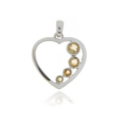Hart hanger gemaakt van 925 sterling zilver met facet geslepen Citrien edelstenen. De hanger heeft een afmeting van 23 x 21 mm.