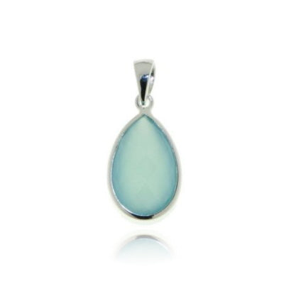 Druppelvormige hanger gemaakt van 925 sterling zilver met een 16 x 10 mm facet geslepen Chalcedoon aqua edelsteen. De afmeting van de hanger is 26 x 12 mm.