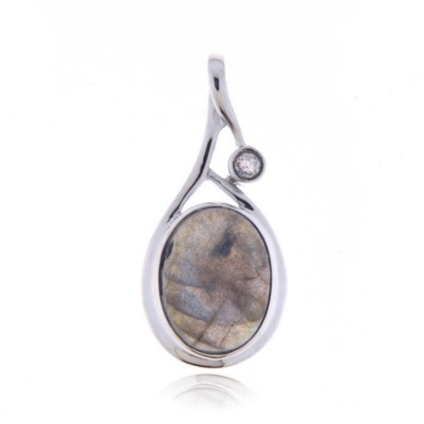 Hanger gemaakt van 925 sterling zilver met een 17 x 13 mm cabouchon geslepen Labradoriet edelsteen. De hanger heeft een afmeting van 35 x 15 mm.