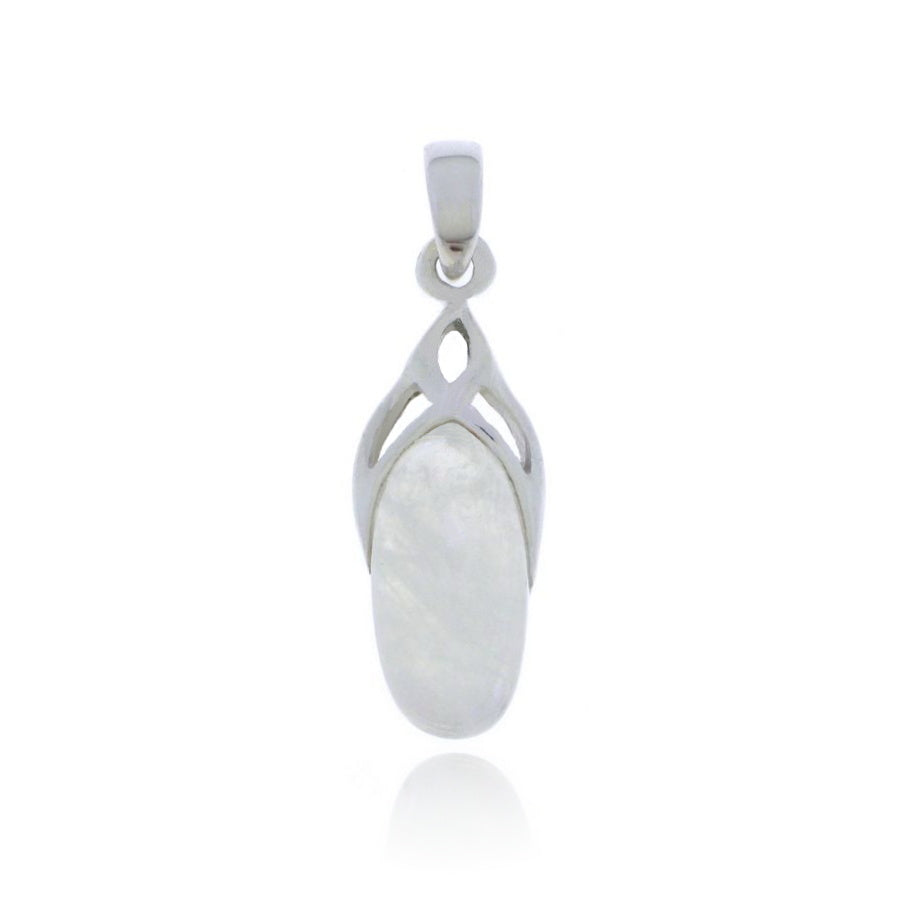 Triskel hanger gemaakt van 925 sterling zilver met Regenboog Maansteen edelsteen. De hanger heeft een afmeting van 22 x 10 mm.